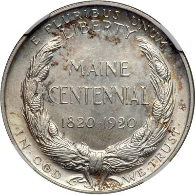 1920 Maine Half Dollar. NGC graded MS-65. Well struck with a hint of gold tone (PCGS # 9326).
