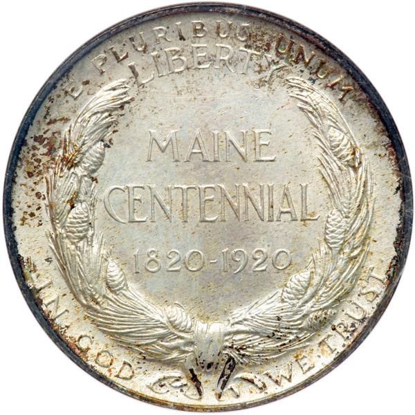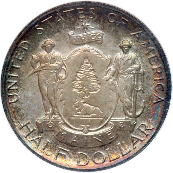 1920 Maine Half Dollar. NGC graded MS-66 CAC Approved. Lovely multi-color toning on the obverse. In an older holder (PCGS # 9326) .