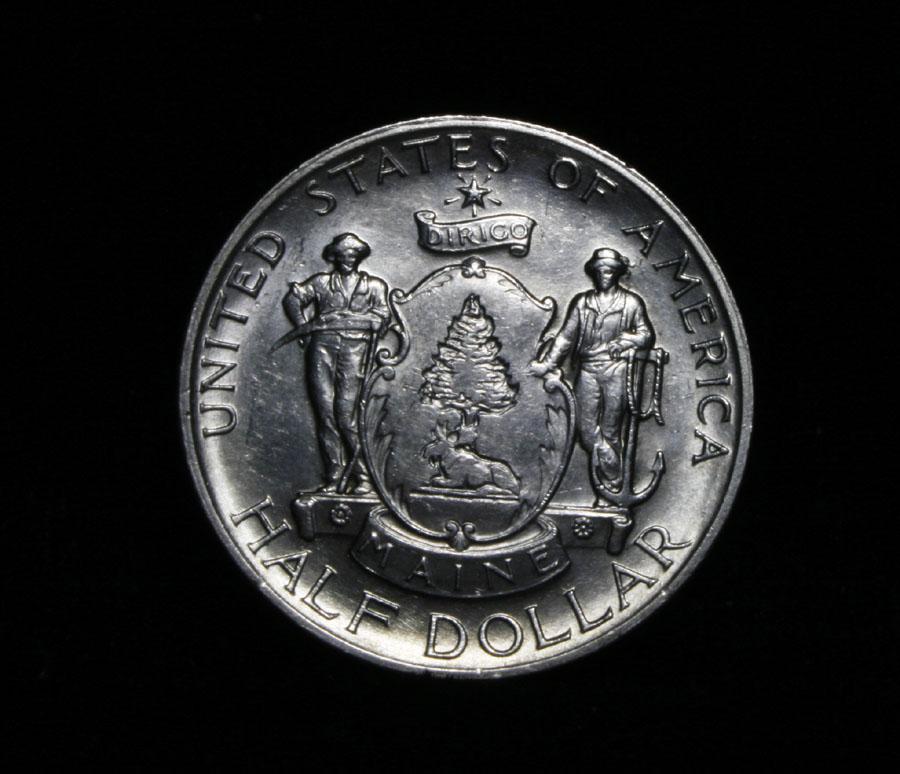 Very Nice white example with nice luster. I will offer my personal buy back guarantee, that this coin is all original and will not come back Ungradeable by any major grading service. When looking at a Maine Commemorative wear first appears on the hands adjacent to the escutcheon and on the wreath’s bow knot. Coin World's Coin Values lists ms63 at $210 and The Wholesale Greysheet lists ms63 at $155. Estimated Value $175