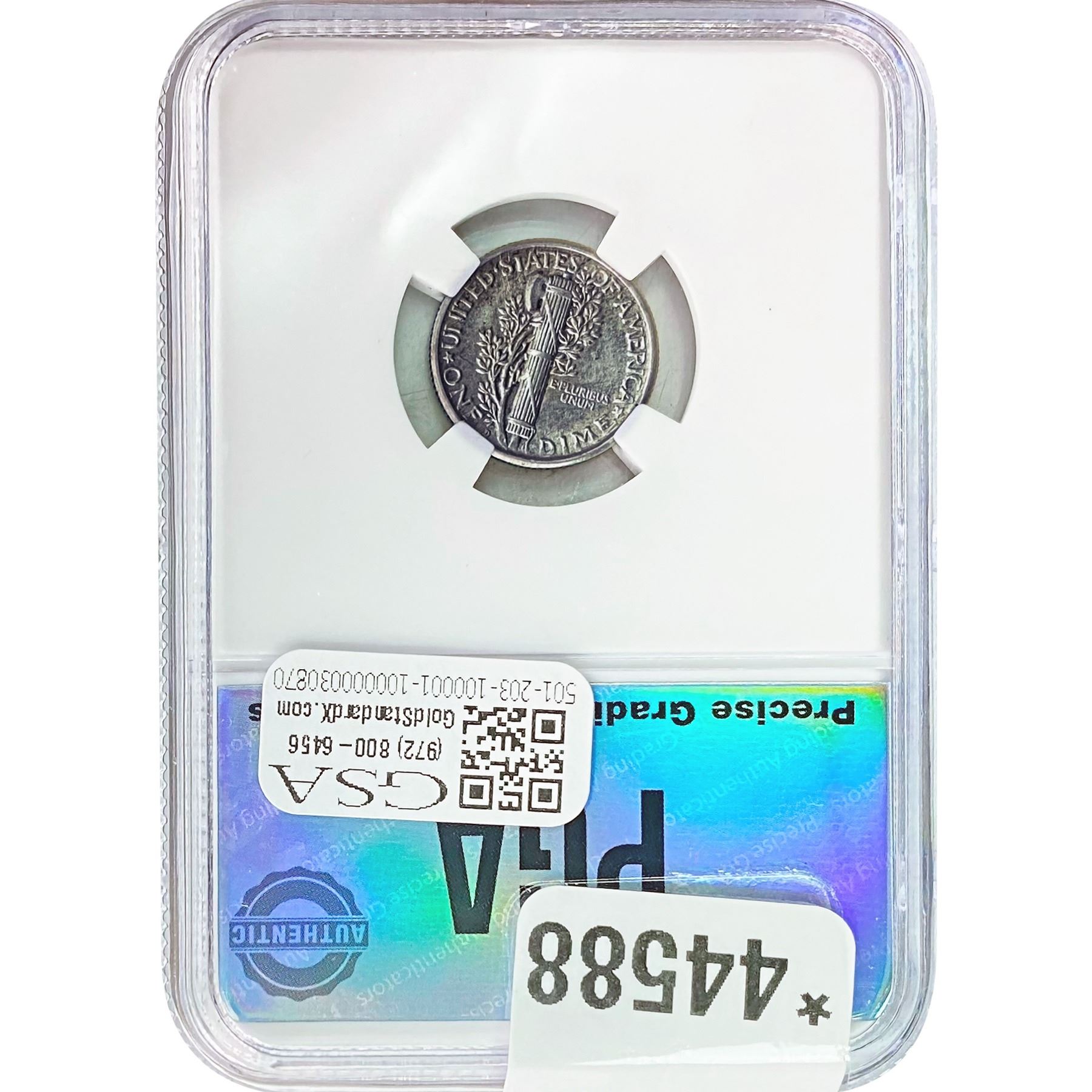 COINS AND CURRENCY LISTED IN GSA’S CATALOG AS GRADED AND ENCAPSULATED BY PCGS, NGC, ANACS, ICG, PCGS CURRENCY, PMG, PCGS BANKNOTE GRADING, CMC OR ANY OTHER THIRD-PARTY GRADING SERVICE ARE LIKEWISE SOLD “AS-IS” EXCEPT AS EXPRESSLY SET FORTH HEREIN. ALL THIRD-PARTY GRADING SERVICE GUARANTEES, INCLUDING AUTHENTICITY, ARE THE SOLE RESPONSIBILITY OF THE THIRD-PARTY GRADING SERVICE AND NOT WARRANTIES OR GUARANTEES OF GSA. BIDDERS SHOULD CONTACT THESE THIRD-PARTY GRADING SERVICES DIRECTLY WITH RESPECT TO ANY CLAIMS OR QUESTIONS THEY MAY HAVE CONCERNING THEIR GUARANTEES AND WARRANTIES. BIDDERS ACKNOWLEDGE AND AGREE THAT AUCTIONEER IS NOT BOUND BY OR LIABLE FOR ANY OPINION OR CERTIFICATION BY ANY THIRD-PARTY GRADING SERVICE. REMOVAL OF A PRODUCT FROM ITS PROTECTIVE CASING OR HOLDER OR ALTERATION OF ANY COIN HOLDER WAIVES ALL RIGHTS CONCERNING THE PRODUCT CONTAINED THEREIN.