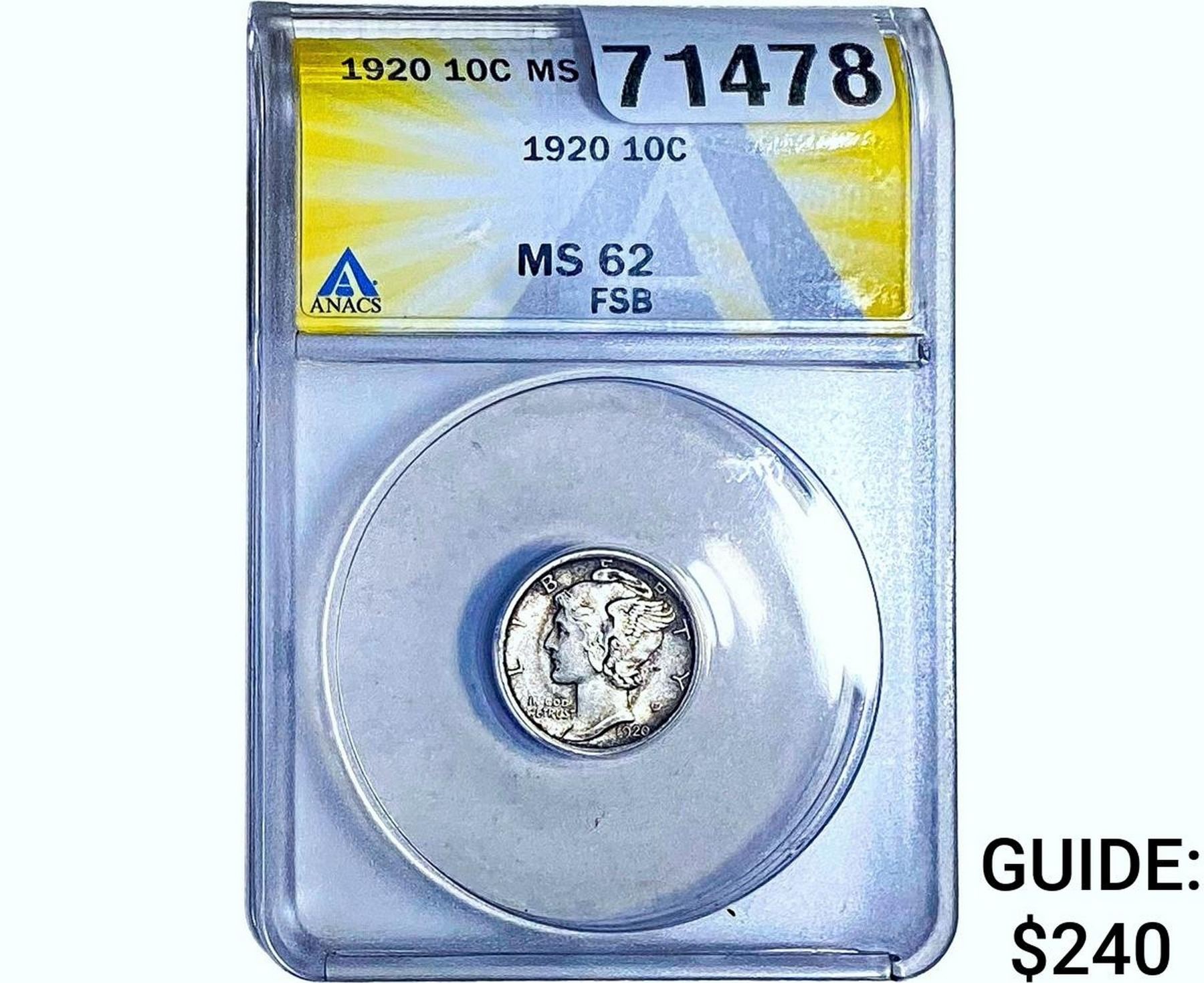 1920 Mercury Silver Dime ANACS MS62 FSB