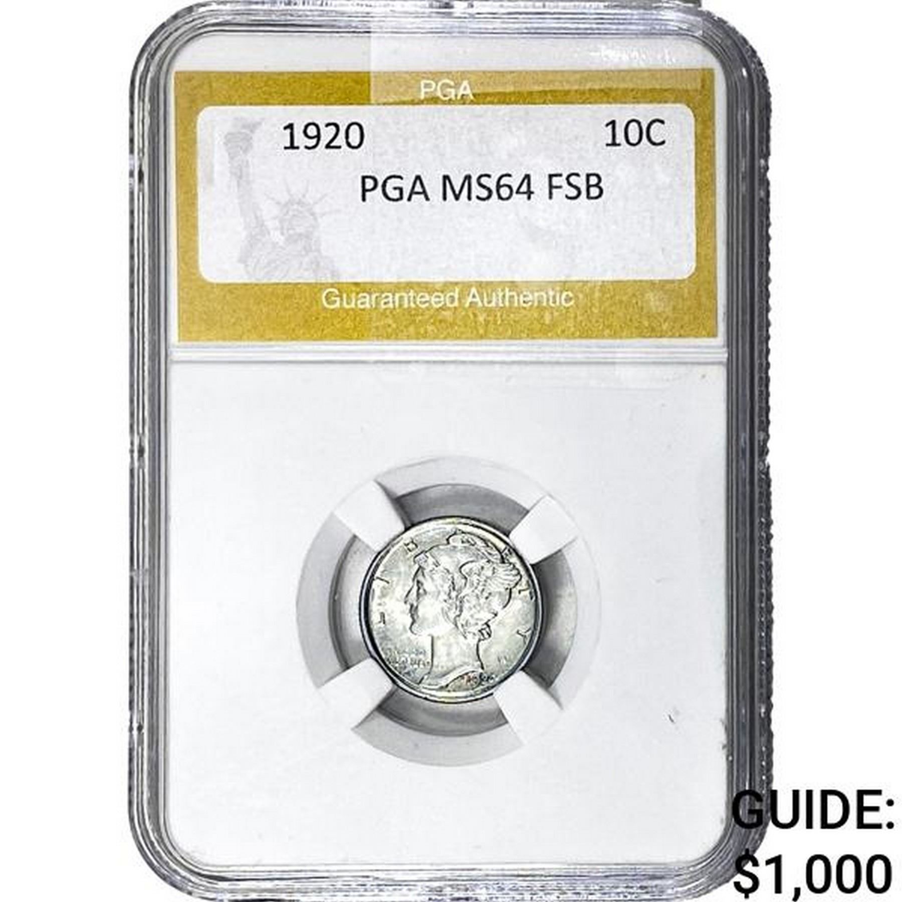 1920 Mercury Silver Dime PGA MS64 FSB