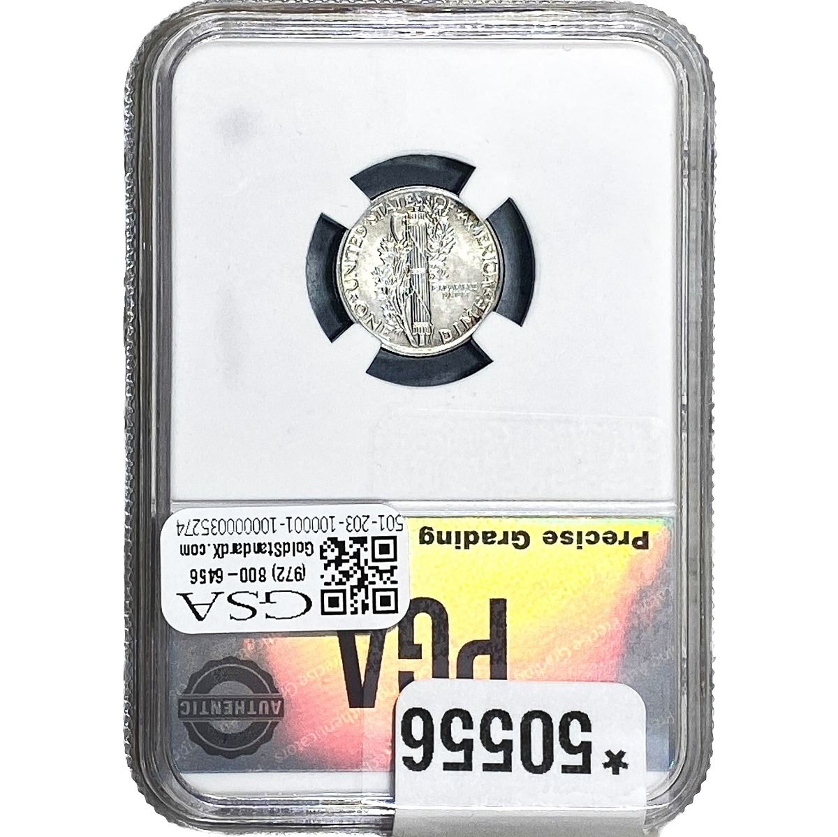 COINS AND CURRENCY LISTED IN GSA’S CATALOG AS GRADED AND ENCAPSULATED BY PCGS, NGC, ANACS, ICG, PCGS CURRENCY, PMG, PCGS BANKNOTE GRADING, CMC OR ANY OTHER THIRD-PARTY GRADING SERVICE ARE LIKEWISE SOLD “AS-IS” EXCEPT AS EXPRESSLY SET FORTH HEREIN. ALL THIRD-PARTY GRADING SERVICE GUARANTEES, INCLUDING AUTHENTICITY, ARE THE SOLE RESPONSIBILITY OF THE THIRD-PARTY GRADING SERVICE AND NOT WARRANTIES OR GUARANTEES OF GSA. BIDDERS SHOULD CONTACT THESE THIRD-PARTY GRADING SERVICES DIRECTLY WITH RESPECT TO ANY CLAIMS OR QUESTIONS THEY MAY HAVE CONCERNING THEIR GUARANTEES AND WARRANTIES. BIDDERS ACKNOWLEDGE AND AGREE THAT AUCTIONEER IS NOT BOUND BY OR LIABLE FOR ANY OPINION OR CERTIFICATION BY ANY THIRD-PARTY GRADING SERVICE. REMOVAL OF A PRODUCT FROM ITS PROTECTIVE CASING OR HOLDER OR ALTERATION OF ANY COIN HOLDER WAIVES ALL RIGHTS CONCERNING THE PRODUCT CONTAINED THEREIN.
