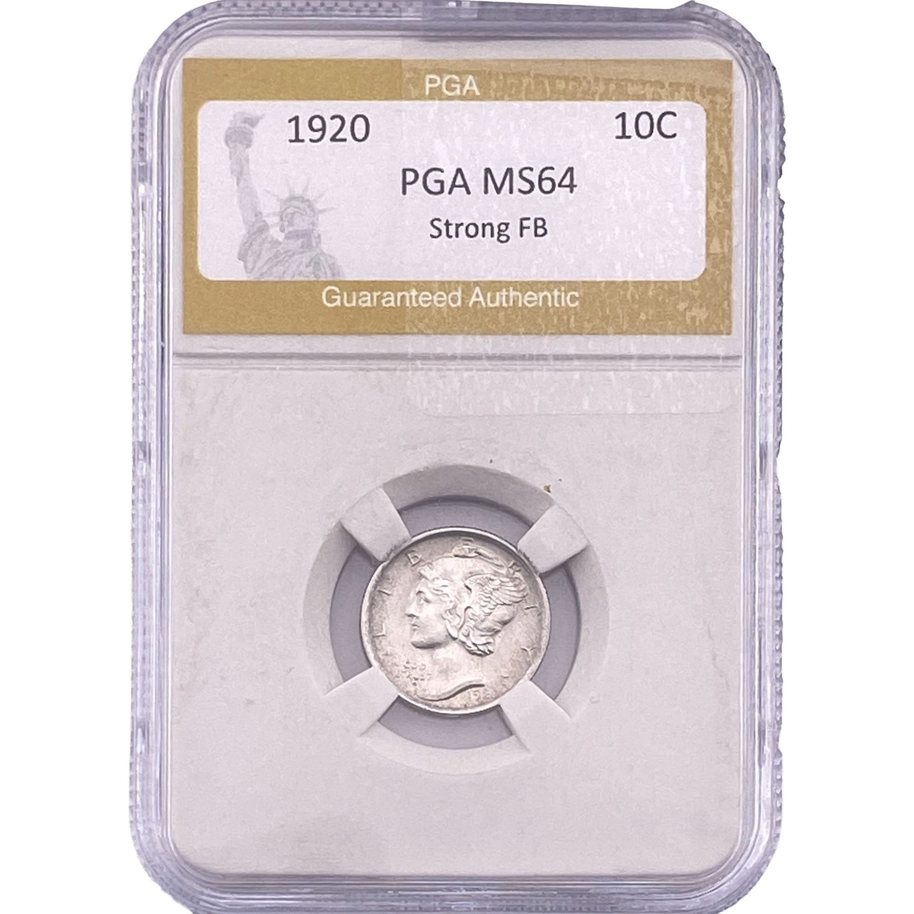 1920 Mercury Silver Dime PGA MS64 Strong FB