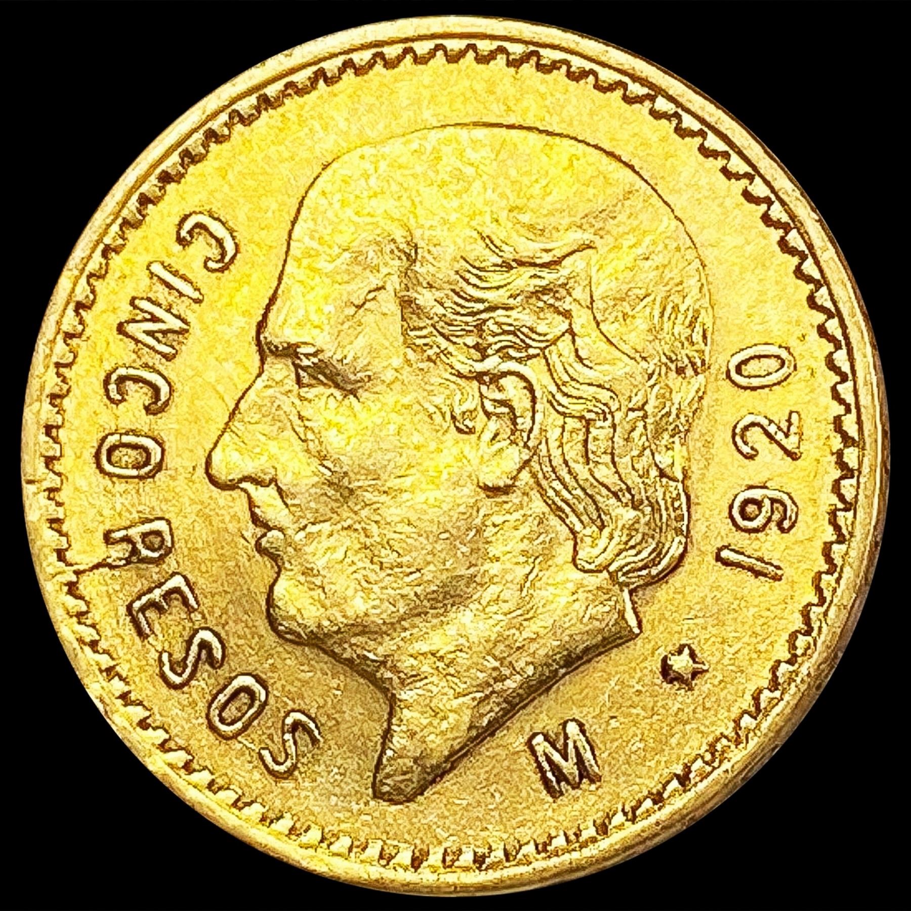 1920 Mexico .1206oz Gold 5 Pesos UNCIRCULATED