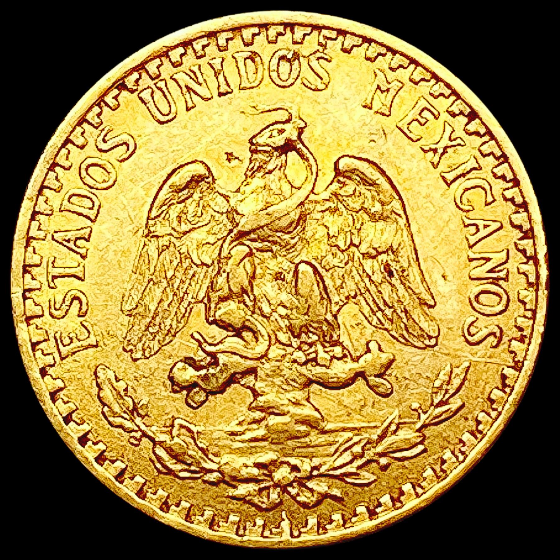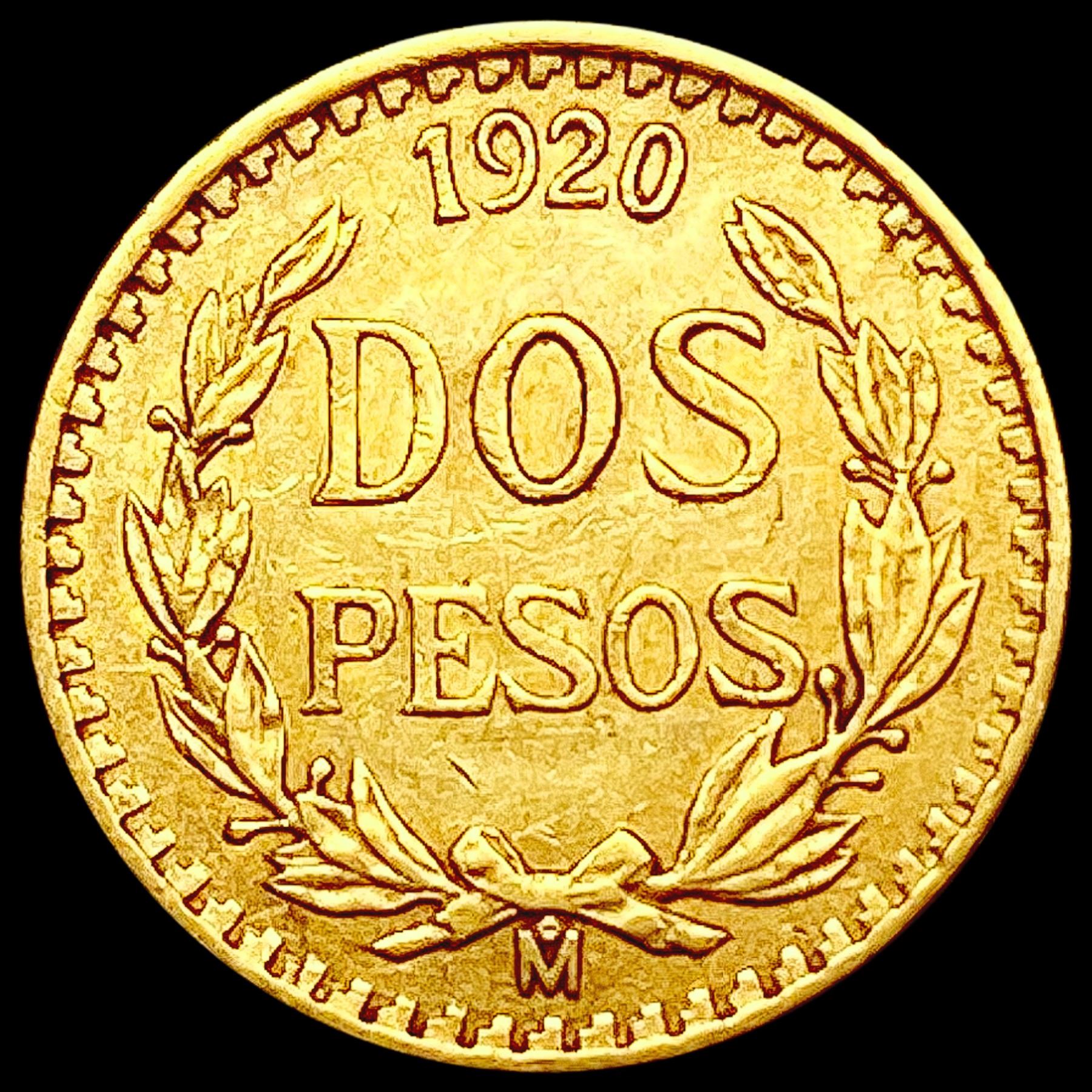 1920 Mexico 2 Peso Gold .0482oz AGW CLOSELY UNCIRCULATED