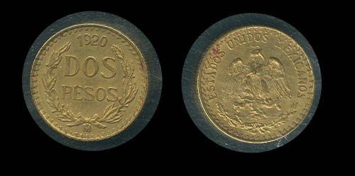 1920 Mexico 2 peso circ gold; Non-restrike circulating date!