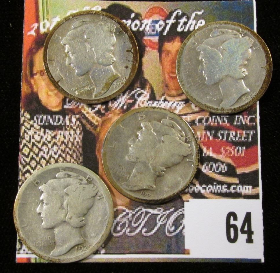 1920 P, S, 23 P, & 24 S Mercury Dimes. (4 pcs.)