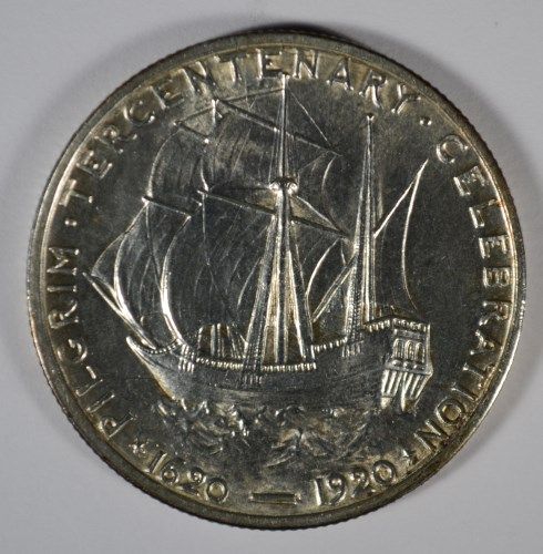 1920 PILGRIM TERCENTENARY COMMEMORATIVE HALF DOLLAR, MS-65 BLAST WHITE