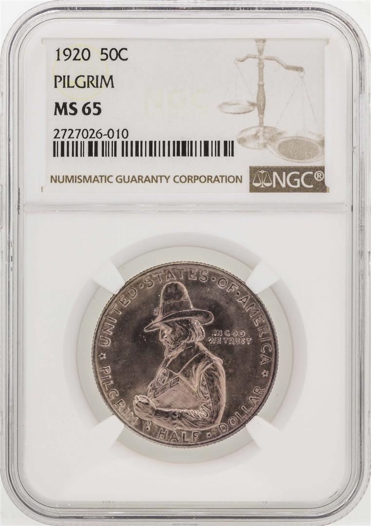 One 1920 Pilgrim Commemorative Half Dollar Silver Coin NGC MS65. NGC Certified.