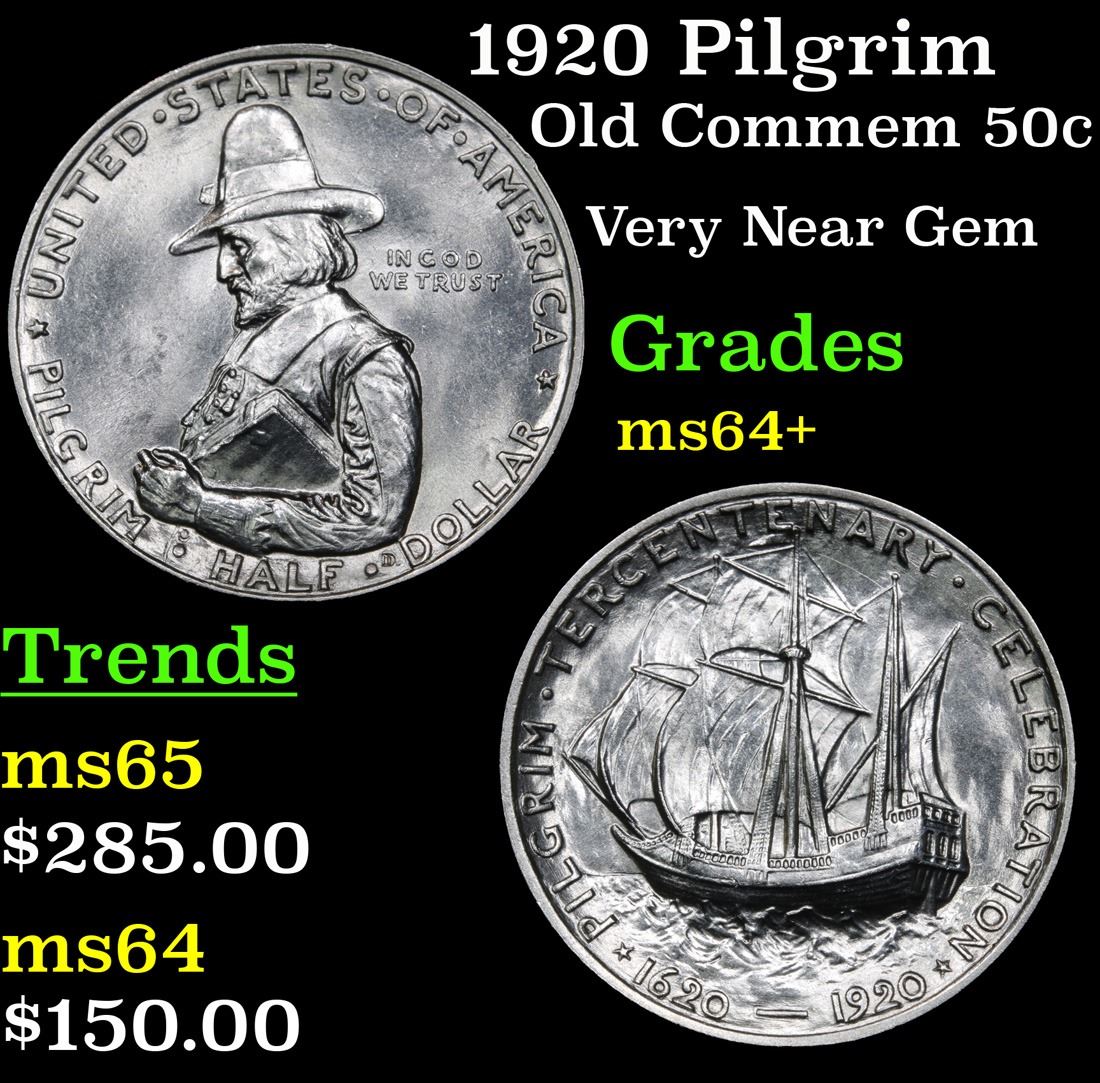 1920 Pilgrim . Very Near Gem Old Commem Half Dollar 50c Grades Choice+ Unc.