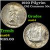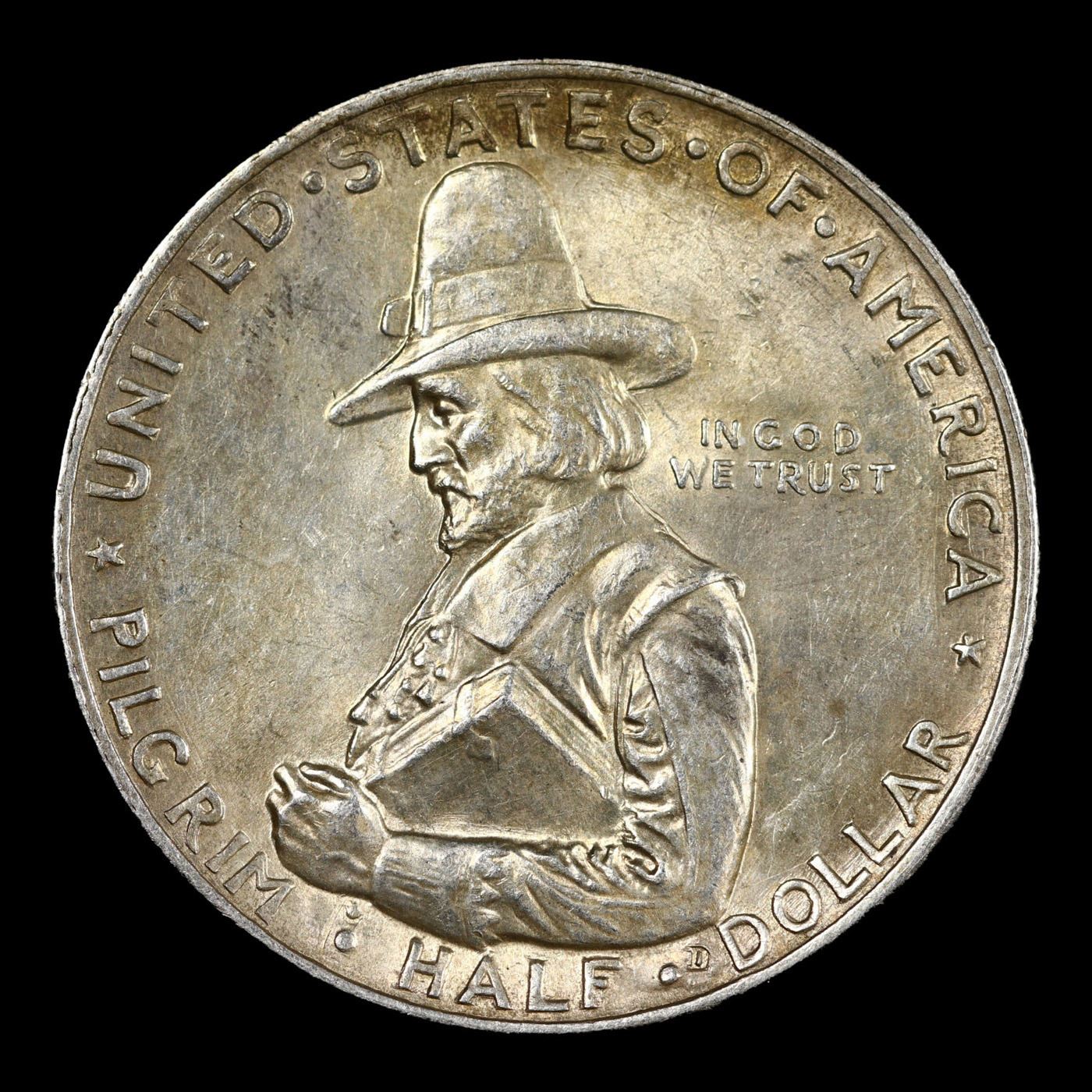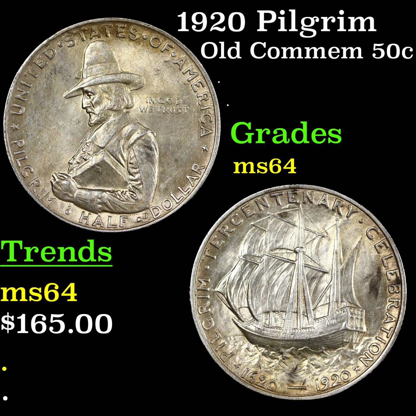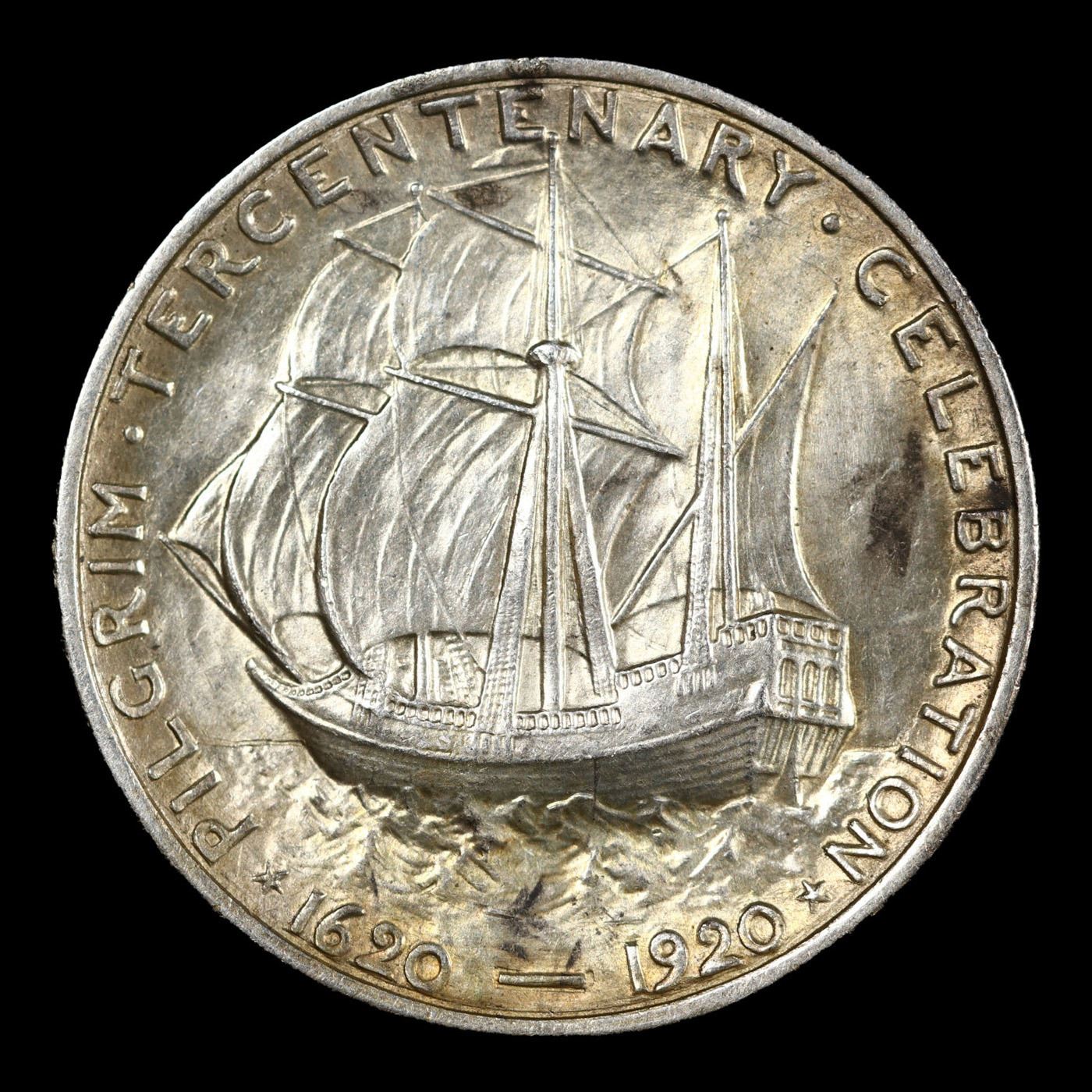 1920 Pilgrim Old Commem Half Dollar 50c Grades Choice Unc. When examining a Pilgrim, look for wear on the Crow's Nest and on the Cheek Bone on the Obverse, as these are the High Points.