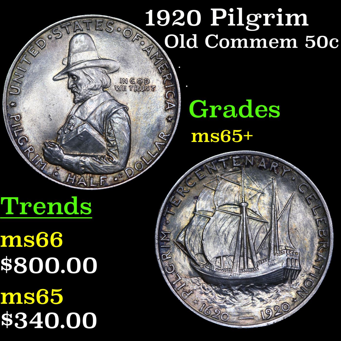 1920 Pilgrim Old Commem Half Dollar 50c Grades GEM+ Unc. When examining a Pilgrim, look for wear on the Crow's Nest and on the Cheek Bone on the Obverse, as these are the High Points.