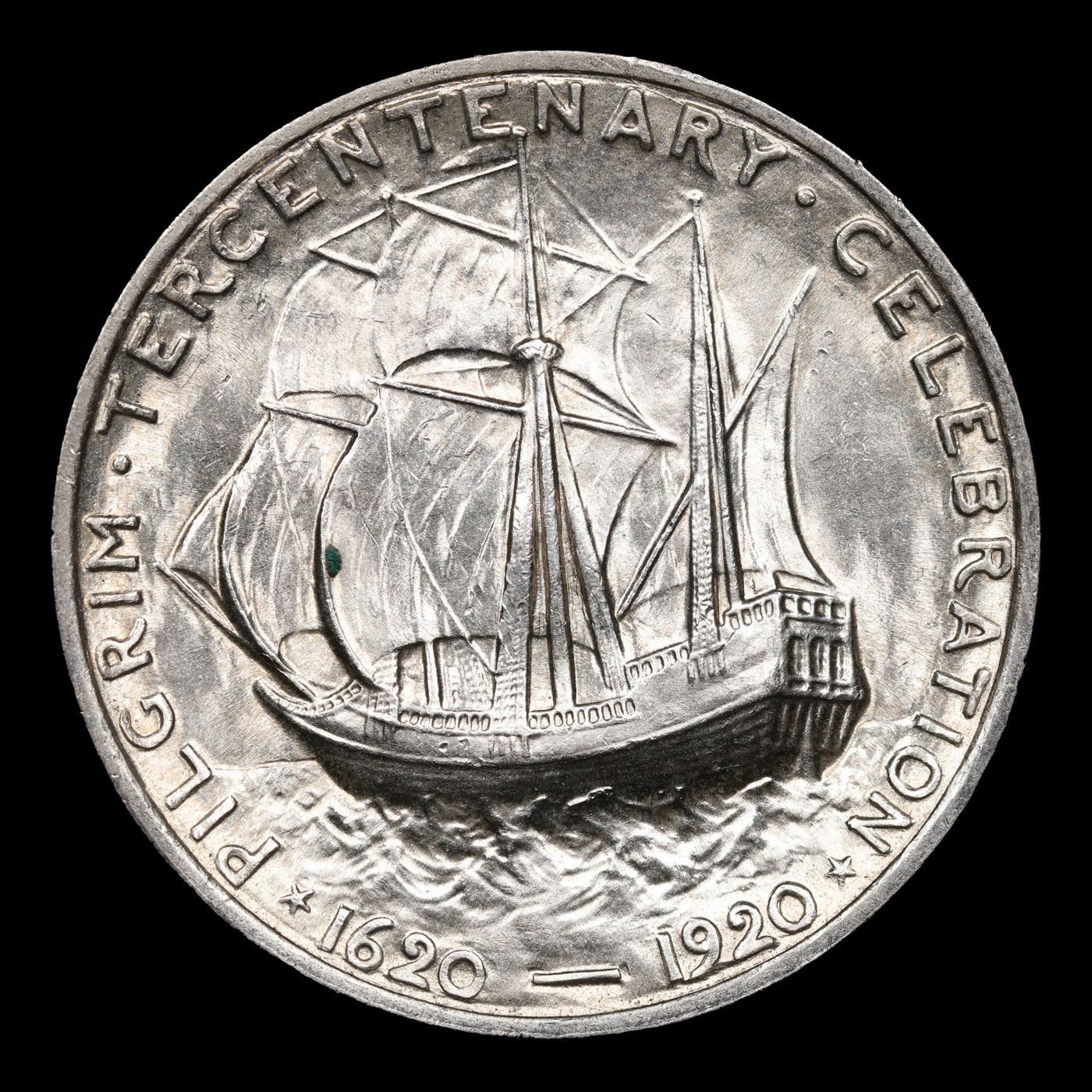 1920 Pilgrim Old Commem Half Dollar 50c Grades GEM+ Unc. When examining a Pilgrim, look for wear on the Crow's Nest and on the Cheek Bone on the Obverse, as these are the High Points.