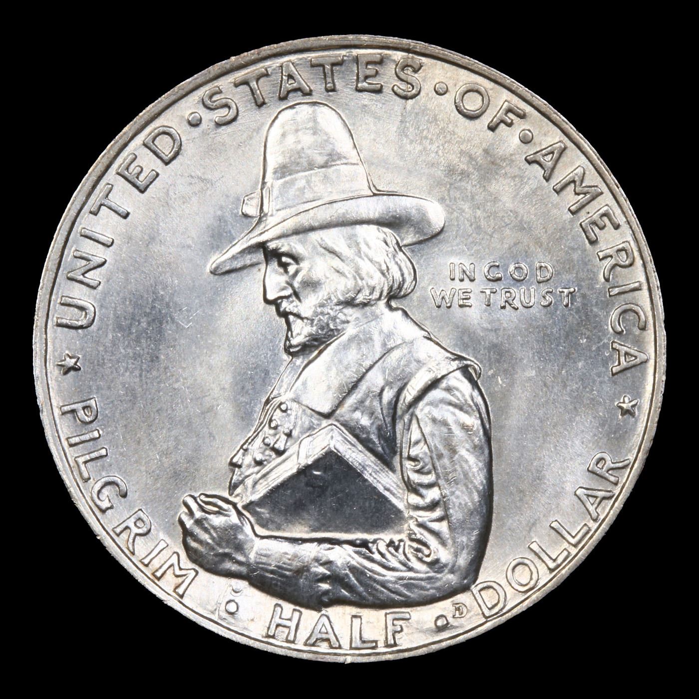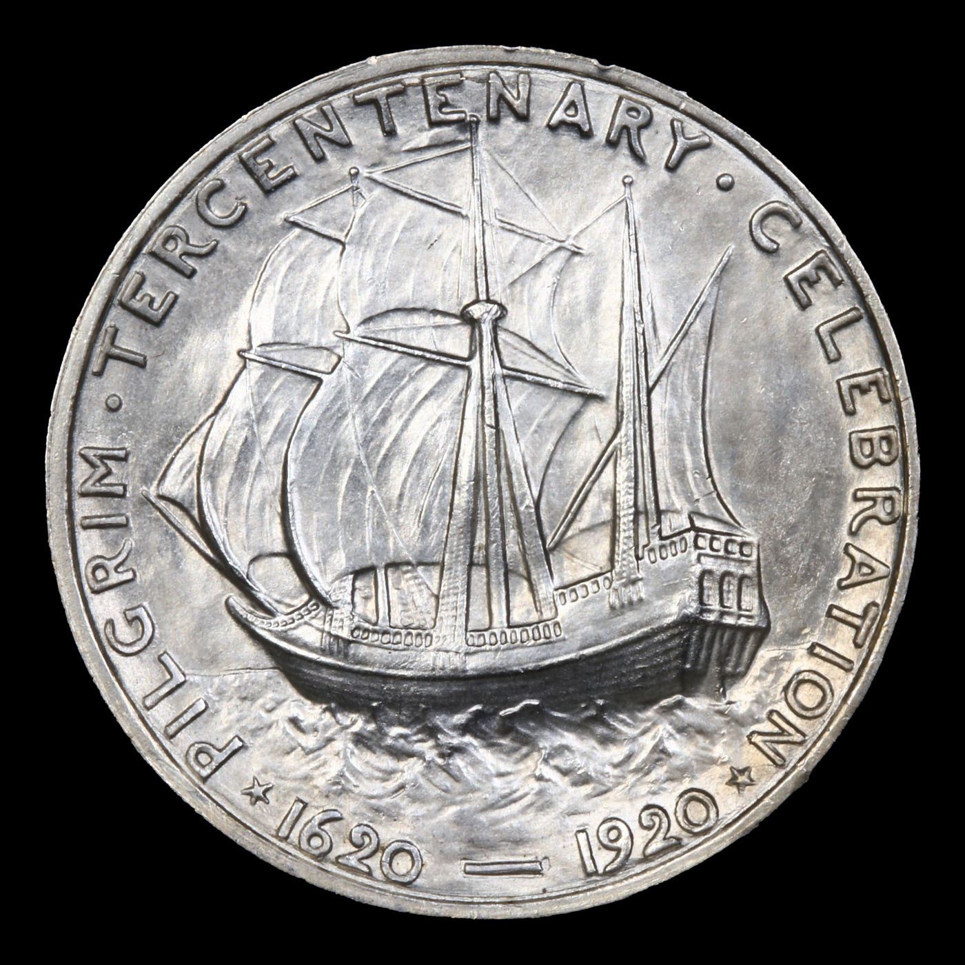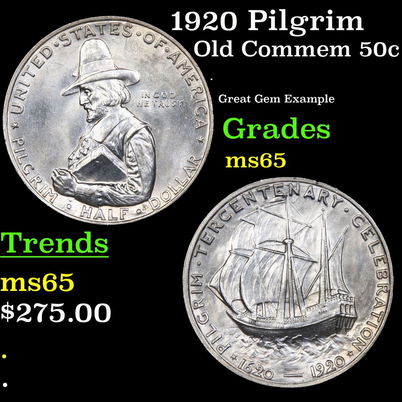 1920 Pilgrim Old Commem Half Dollar 50c Grades GEM Unc. When examining a Pilgrim, look for wear on the Crow's Nest and on the Cheek Bone on the Obverse, as these are the High Points.