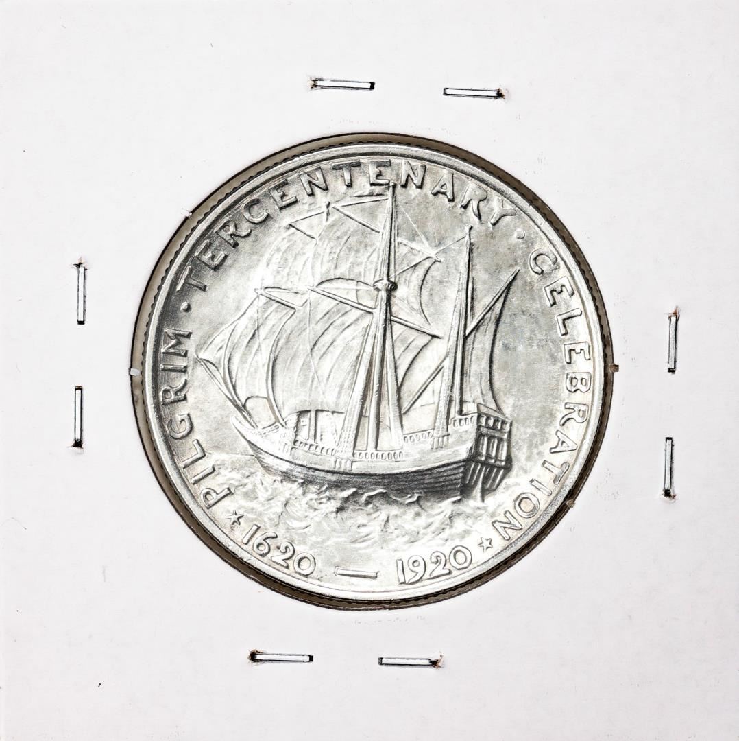 One 1920 Pilgrim Tercentenary Commemorative Half Dollar Coin.
