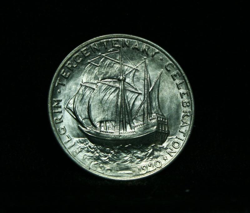 Blazing Luster, Beautiful example of this Great Commemorative. Great Eye Appeal. When examining a Pilgrim look for wear on the crow's nest and on the Cheek Bone on the obverse as these are the high points. Coin World's Coin Values lists ms65 at $400, and The Wholesale Greysheet Value of ms65 at $305. Estimated Value $350