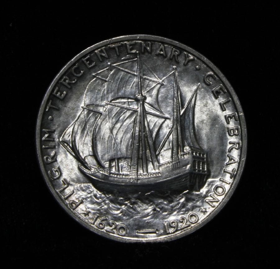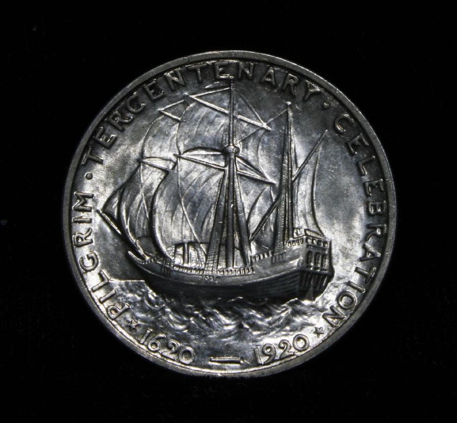 Blazing Luster, Beautiful example of this Great Commemorative. Great Eye Appeal. When examining a Pilgrim look for wear on the crow's nest and on the Cheek Bone on the obverse as these are the high points. Coin World's Coin Values lists ms65 at $400, and The Wholesale Greysheet Value of ms65 at $305. Estimated Value $350