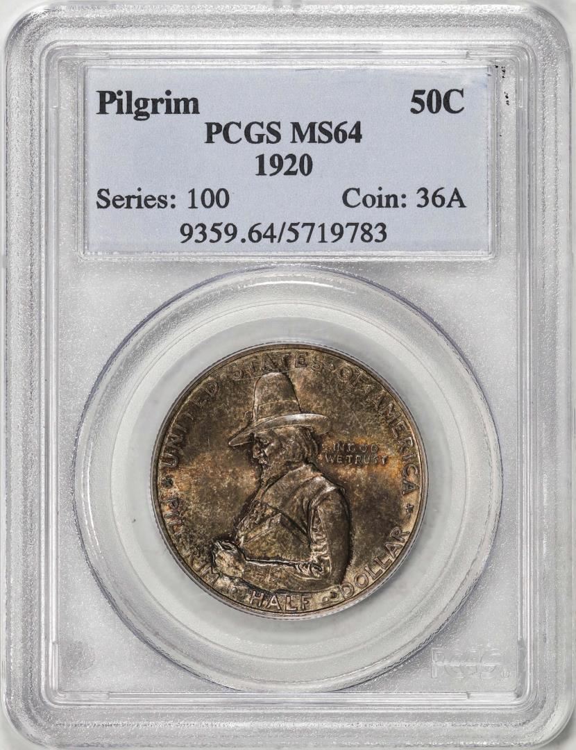 One 1920 Pilgrim Tercentenary Commemorative Half Dollar Silver Coin PCGS MS64. PCGS Graded.