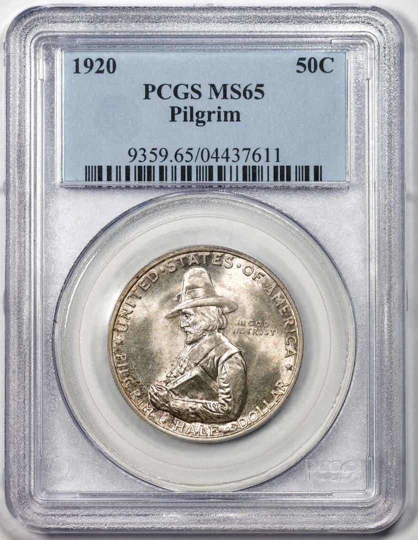 One 1920 Pilgrim Tercentenary Commemorative Half Dollar Silver Coin PCGS MS65. PCGS Graded.