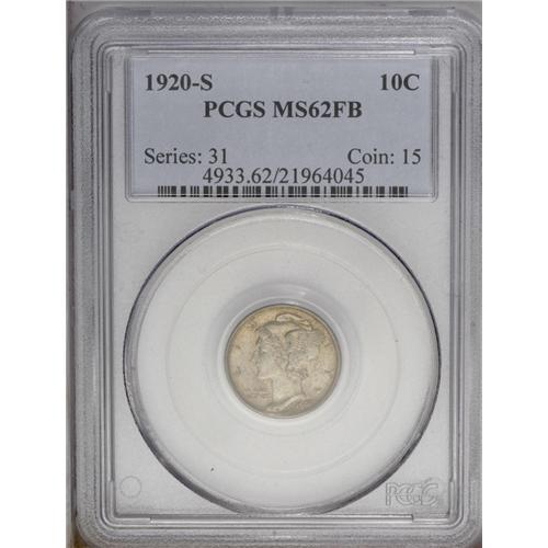 <B>1920-S<10C> MS62 Full Bands PCGS.</B></I> Sharply struck with vibrant gold and olive coloration. Fully lustrous surfaces exhibit only light surface marks that are expected at this grade level.