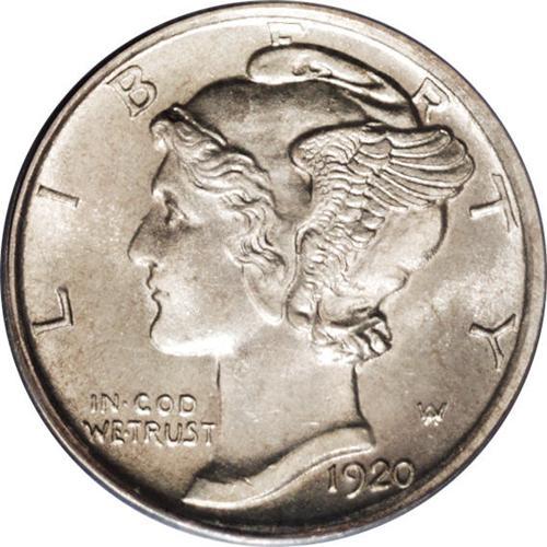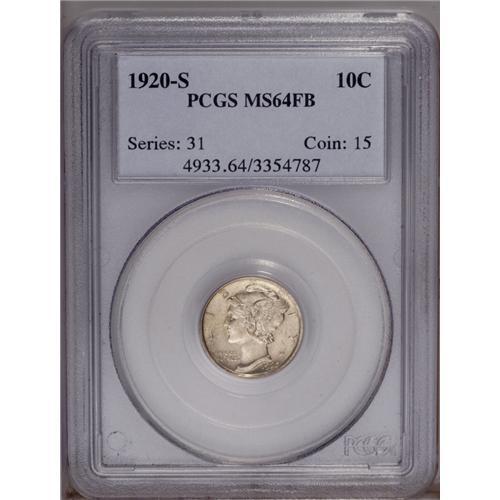<B>1920-S 10C MS64 Full Bands PCGS.</B></I> Only slightly subdued from full brilliance, this specimen displays attractive surfaces and sharp strike. In addition to the central crossbands, the date is also an area of potential striking softness for this S-mint issue. The closeness of the date to the rim precluded proper metal flow and, on many Mint State examples, the final digit exhibits varying degrees of weakness. The near-Gem example offered here is unaffected by this often-found deficiency. Population: 81 in 64, 30 finer (1/06).