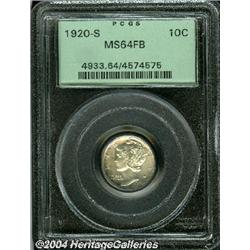 <B>1920-S<10C> MS64 Full Bands PCGS.</B></I> This example is sharply struck and very nearly Gem quality. All of the design elements on each side are boldly rendered. A lovely example to boost your collection. The surfaces are mostly brilliant with satiny luster and peripheral toning. <BR><BR><B>Important notice:</B> Heritage usually auctions material at the rate of 200-250 lots per hour. On some occasions eBay Live bid software or the Internet may not be able to keep up with the pace of the auction. We recommend placing a realistic absentee bid now as insurance to avoid disappointment. Occasionally the auctioneer may eliminate or reject an eBay Live bid, and the auctioneer may also reopen a lot after the close of the eBay live bidding (usually because we missed an audience bid), and may reject your bid even if it shows you as the winning bidder. By bidding via eBay Live, you agree that Heritage may award the lot to another bidder at its sole discretion under the circumstances described above or any other reasonable circumstances. Since eBay bids are not shown to us until we open the lot on the floor, we treat those bids just like floor bids. In most cases the floor responds before the eBay bid is presented to us, due to Internet lag time, so for consistency we have made it a policy that floor bids are always considered first over tie eBay live bids. Also please note that all Heritage lots purchased through eBay Live carry a 20% Buyer's Premium. Please make sure you read the Terms and Conditions before you bid.