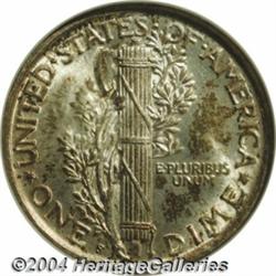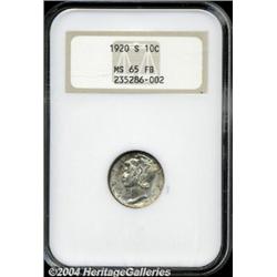 <B>1920-S<10C> MS65 Full Bands NGC.</B></I> The specimen in this lot differs from most Mint State examples of this date in that it possesses both a full date (that is, the final digit in the date is relatively strong and separated from the rim) and full bands. Lustrous surfaces are characterized by olive, gold, and sea-green toning, which assumes a streaked appearance on the obverse, and a mottled pattern on the reverse. A couple of trivial marks on mercury's neck are not bothersome.<BR><I>From The Reed Hawn Collection of Mercury Dimes.</B></I> <BR><BR><B>Important notice:</B> Heritage usually auctions material at the rate of 200-250 lots per hour. On some occasions eBay Live bid software or the Internet may not be able to keep up with the pace of the auction. We recommend placing a realistic absentee bid now as insurance to avoid disappointment. Occasionally the auctioneer may eliminate or reject an eBay Live bid, and the auctioneer may also reopen a lot after the close of the eBay live bidding (usually because we missed an audience bid), and may reject your bid even if it shows you as the winning bidder. By bidding via eBay Live, you agree that Heritage may award the lot to another bidder at its sole discretion under the circumstances described above or any other reasonable circumstances. Since eBay bids are not shown to us until we open the lot on the floor, we treat those bids just like floor bids. In most cases the floor responds before the eBay bid is presented to us, due to Internet lag time, so for consistency we have made it a policy that floor bids are always considered first over tie eBay live bids. Also please note that all Heritage lots purchased through eBay Live carry a 20% Buyer's Premium. Please make sure you read the Terms and Conditions before you bid. </span></font></tr></table></td></tr></table>
