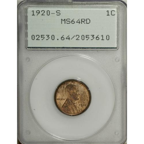 <B>1920-S 1C MS64 Red PCGS.</B></I> Choice and sharply struck with vivid copper-orange surfaces. Some minute marks are visible on Lincoln's portrait, and a few small carbon spots occur in the fields. Housed in a first-generation PCGS holder. Population: 82 in 64 Red, 8 finer (11/06).<BR><BR><b>Shipping:</b> Coin/Currency (<a target="_blank" href="http://www.heritageauctions.com/common/shipping.php">view shipping information</a>)