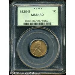 <B>1920-S 1C MS64 Red PCGS.</B></I> Well struck and seemingly pristine, there are some dark toning streaks on the obverse, and some darker specks on the reverse side, too faint to prove a distraction. A marvelous near-Gem, only needing a slightly higher degree of luster to achieve Gem status. Conditionally scarce at or above this level. Population: 74 in 64, 8 finer (1/05). Lot:5469