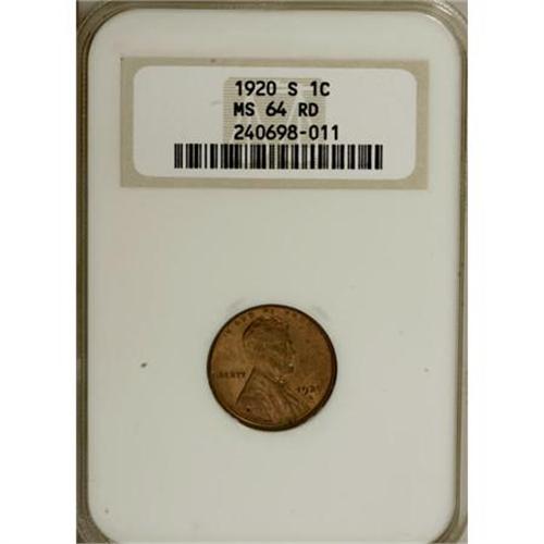<B>1920-S 1C MS64 Red NGC.</B></I> . NGC Census: (29/10). PCGS Population (83/8). Mintage: 46,220,000. Numismedia Wsl. Price for NGC/PCGS coin in MS64: $800. (#2530)<BR><BR><B>Coin Engraver:</B> Victor D. Brenner<BR><BR><b>Shipping:</b> Coins & Currency (<a target="_blank" href="http://www.heritageauctions.com/common/shipping.php">view shipping information</a>)