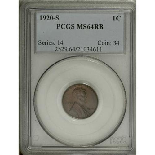 <B>1920-S 1C MS64 Red and Brown PCGS.</B></I> PCGS Population (120/16). NGC Census: (65/19). Mintage: 46,220,000. Numismedia Wsl. Price for NGC/PCGS coin in MS64: $352. (#2529)<BR><BR><B>Coin Engraver:</B> Victor D. Brenner<BR><BR><b>Shipping:</b> Coins & Currency (<a target="_blank" href="http://www.heritageauctions.com/common/shipping.php">view shipping information</a>)