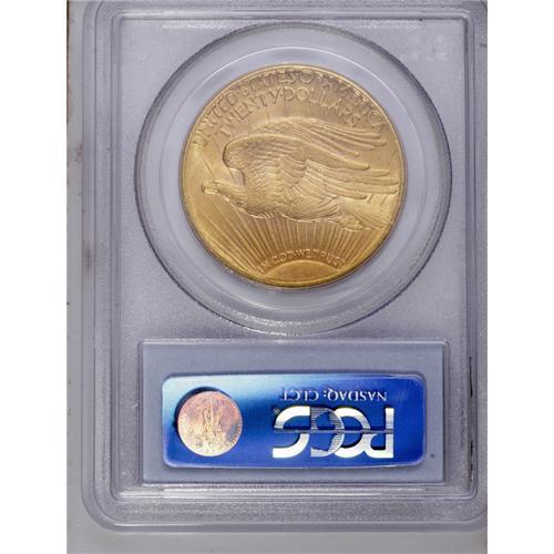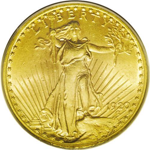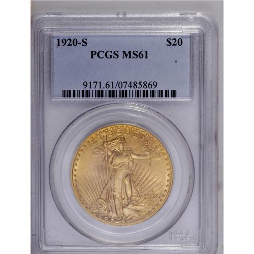 <B>1920-S<$20> MS61 PCGS.</B></I> Despite a not insignificant mintage of 558,000 pieces, the 1920-S has long been regarded as one of the premier rarities in the Saint-Gaudens double eagle series. Excluding the 1927-D and 1933 (both of which are considered non-collectible), the 1920-S is the second-rarest Saint-Gaudens issue, behind the 1921. It is also the first date from this challenging decade to have been extensively melted. A Mint State '20-S double eagle is a rare coin whose appearance at auction is sure to inspire spirited bidding.<BR> Prior to 1950, the 1920-S was generally overshadowed by a number of other issues, including the 1924-S, 1925-D, 1927-D, 1931-D, and others. Since 1950, most of those other dates have seen their existing populations swelled by the discovery of hoarded coins in Europe and Latin America. Not so the 1920-S. Not even a small hoard of '20-S coins has emerged, thus far, and with the passage of time it seems less and less likely that any ever will. At present, 92 examples of the issue have been certified in Mint State grades by NGC and PCGS combined (including an unknown number of resubmissions), a total which is slightly higher than some previous estimates of the issue's extant population, but seems unlikely to increase to any significant extent in the future.<BR> This coin is one of only two MS61 examples known to PCGS (6/06), and seems conservatively graded as such. The strike is generally free of criticism, and the eye appeal is impressive. With bright, satiny features, the number of abrasions is minimal, and most features are well defined, except for the typically weak Capitol building and Liberty's torch hand. As befits the issue, both sides are richly frosted with beautiful reddish-gold color. A significant bidding opportunity for advanced gold collectors.