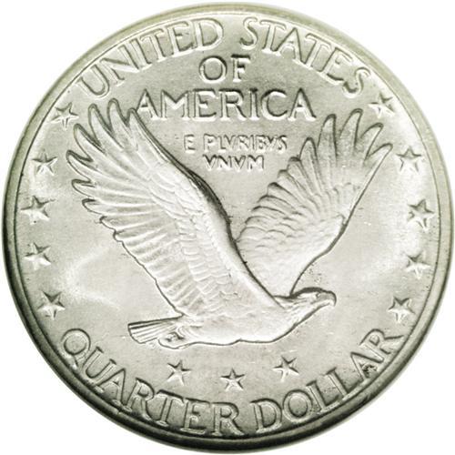<B>1920-S<25C> MS64 Full Head NGC.</B></I> This issue is extremely scarce even without Full Head details, as it is normally weak on the head, chain mail, and inner shield. The present example is pleasingly well struck on the chain mail and shield and achieves the requirements for Full Head designation, although the highest three rivets lack definition and the nearby drapery that crosses Liberty's torso is a bit flat. The lovely surfaces are highly lustrous and untoned, but with a whisper-thin overlay of lilac and rose. A few light abrasions on the eagle's breast, noted only under a loupe, and a couple of ticks on Liberty's lower legs limit the grade. In the July 9, 2004, monthly supplement to the <I>Coin Dealer Newsletter,</B></I> Standing Liberty quarter pundit J.H. Cline said, "As stated in my first book [published in 1975] I believed then that the 1920-S is the sleeper of the set. That has not changed. ... Much room remains for hidden value in the top three grades in Full and non-Full Head grades." NGC has graded eight Full Head coins finer (1/06).