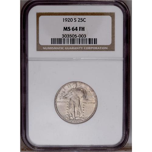 1920-S 25C MS64 Full Head NGC. This issue is extremely 1920-S[25C] MS64 Full Head NGC.