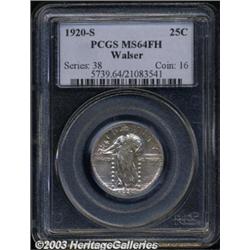 1920-S 25C MS64 Full Head PCGS. Ex: Walser. A strike as well as a condition rarity, this is a bright, lustrous example that shows a light, even layer of rose toning over each side. Remarkably free from abrasions for the grade. Important notice: Heritage usually auctions material at the rate of 200-250 lots per hour. On some occasions eBay Live bid software or the Internet may not be able to keep up with the pace of the auction. We recommend placing a realistic absentee bid now as insurance to avoid disappointment. Occasionally the auctioneer may eliminate or reject an eBay Live bid, and the auctioneer may also reopen a lot after the close of the eBay live bidding (usually because we missed an audience bid), and may reject your bid even if it shows you as the winning bidder. By bidding via eBay Live, you agree that Heritage may award the lot to another bidder at its sole discretion under the circumstances described above or any other reasonable circumstances. Also please note that all Heritage lots purchased through eBay Live carry a 20% Buyer's Premium. Please make sure you read the Terms and Conditions before you bid.