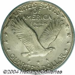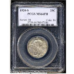 <B>1920-S<25C> MS64 Full Head PCGS.</B></I> Remarkably well defined for the issue, the surfaces are moderately toned, but are a bit too lackluster for a higher grade. Population: 24 in 64, 20 finer (9/04). <BR><BR><B>Important notice:</B> Heritage usually auctions material at the rate of 200-250 lots per hour. On some occasions eBay Live bid software or the Internet may not be able to keep up with the pace of the auction. We recommend placing a realistic absentee bid now as insurance to avoid disappointment. Occasionally the auctioneer may eliminate or reject an eBay Live bid, and the auctioneer may also reopen a lot after the close of the eBay live bidding (usually because we missed an audience bid), and may reject your bid even if it shows you as the winning bidder. By bidding via eBay Live, you agree that Heritage may award the lot to another bidder at its sole discretion under the circumstances described above or any other reasonable circumstances. Since eBay bids are not shown to us until we open the lot on the floor, we treat those bids just like floor bids. In most cases the floor responds before the eBay bid is presented to us, due to Internet lag time, so for consistency we have made it a policy that floor bids are always considered first over tie eBay live bids. Also please note that all Heritage lots purchased through eBay Live carry a 20% Buyer's Premium. Please make sure you read the Terms and Conditions before you bid.