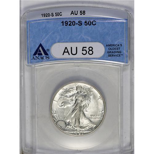 1920-S 50C AU58 ANACS. Typically soft in the centers, 1920-S