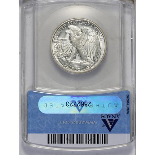 <B>1920-S<50C> AU58 ANACS.</B></I> Typically soft in the centers, with mild highpoint wear and a few wispy pinscratches, this essentially untoned near-Mint representative has a decent overall appearance for the grade. Even though 4.6 million pieces were struck of this issue, the 1920-S is a conditionally scarce issue and one that is generally not found in Uncirculated condition.