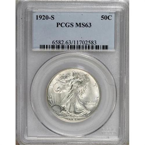 <B>1920-S 50C MS63 PCGS.</B></I> This untoned and lustrous example has the look of a finer grade, since the surfaces are only minimally abraded. The highpoints of the walking Liberty are softly brought up, as usual for this strike-challenging issue. A good value relative to higher grades.<BR><BR><B>Coin Engraver:</B> Adolph A. Weinman<BR><BR><b>Shipping:</b> Coins & Currency (<a target="_blank" href="http://www.heritageauctions.com/common/shipping.php">view shipping information</a>)