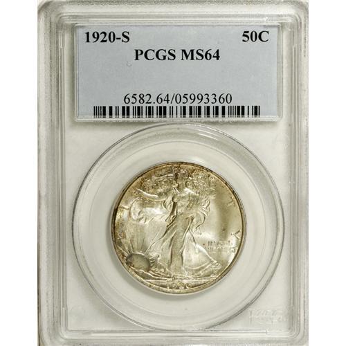 1920-S 50C MS64 PCGS. The strike on this comparatively
