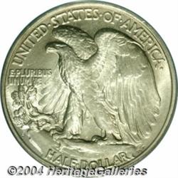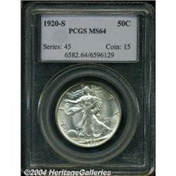 <B>1920-S<50C> MS64 PCGS.</B></I> The 1920-S Walker is far more difficult to locate at the Uncirculated level than its mintage would suggest and is one of the great strike rarities in the series. Just the slightest golden patina embraces the reverse of this remarkably lustrous near-Gem. One abrasion is noted in the right obverse field. The surfaces come up just short in the category of strike and are thus limited to an MS64 rating. Population: 81 in 64, 42 finer (3/04). <BR><BR><B>Important notice:</B> Heritage usually auctions material at the rate of 200-250 lots per hour. On some occasions eBay Live bid software or the Internet may not be able to keep up with the pace of the auction. We recommend placing a realistic absentee bid now as insurance to avoid disappointment. Occasionally the auctioneer may eliminate or reject an eBay Live bid, and the auctioneer may also reopen a lot after the close of the eBay live bidding (usually because we missed an audience bid), and may reject your bid even if it shows you as the winning bidder. By bidding via eBay Live, you agree that Heritage may award the lot to another bidder at its sole discretion under the circumstances described above or any other reasonable circumstances. Since eBay bids are not shown to us until we open the lot on the floor, we treat those bids just like floor bids. In most cases the floor responds before the eBay bid is presented to us, due to Internet lag time, so for consistency we have made it a policy that floor bids are always considered first over tie eBay live bids. Also please note that all Heritage lots purchased through eBay Live carry a 20% Buyer's Premium. Please make sure you read the Terms and Conditions before you bid. </span></font></tr></table></td></tr></table>