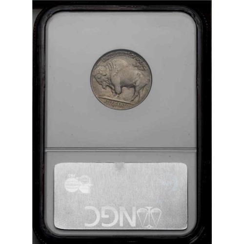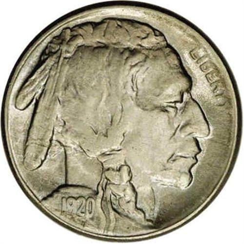 <B>1920-S<5C> MS63 NGC.</B></I> A scarce issue in Mint State, this glowing example has semi-reflective surfaces with apricot-gray toning and a typically soft strike. An interesting die crack (as struck) extends beneath 192 in the date, and die wear has produced a mild halo effect along part of the Indian's profile. The 1920-S is one of the scarcest coins in the Buffalo nickel series in Uncirculated grades.