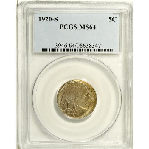 <B>1920-S 5C MS64 PCGS.</B></I> The 1920-S is notorious as one of the worst produced issues in the Buffalo nickel series. Not only does this attractive near-Gem representative boast an uncommonly strong strike for the issue, the viewer is also drawn to lustrous, carbon-free surfaces that are overlaid in lovely golden and pastel blue patina.<BR><BR><b>Shipping:</b> Coin/Currency (<a target="_blank" href="http://www.heritageauctions.com/common/shipping.php">view shipping information</a>)