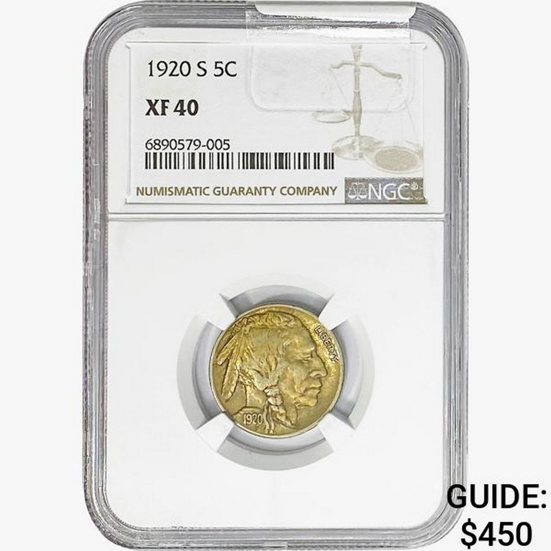1920-S Buffalo Nickel NGC XF40