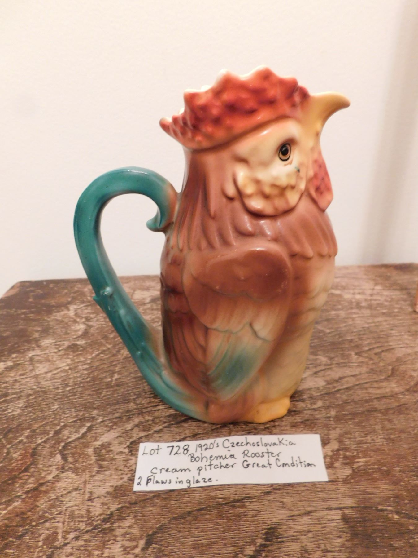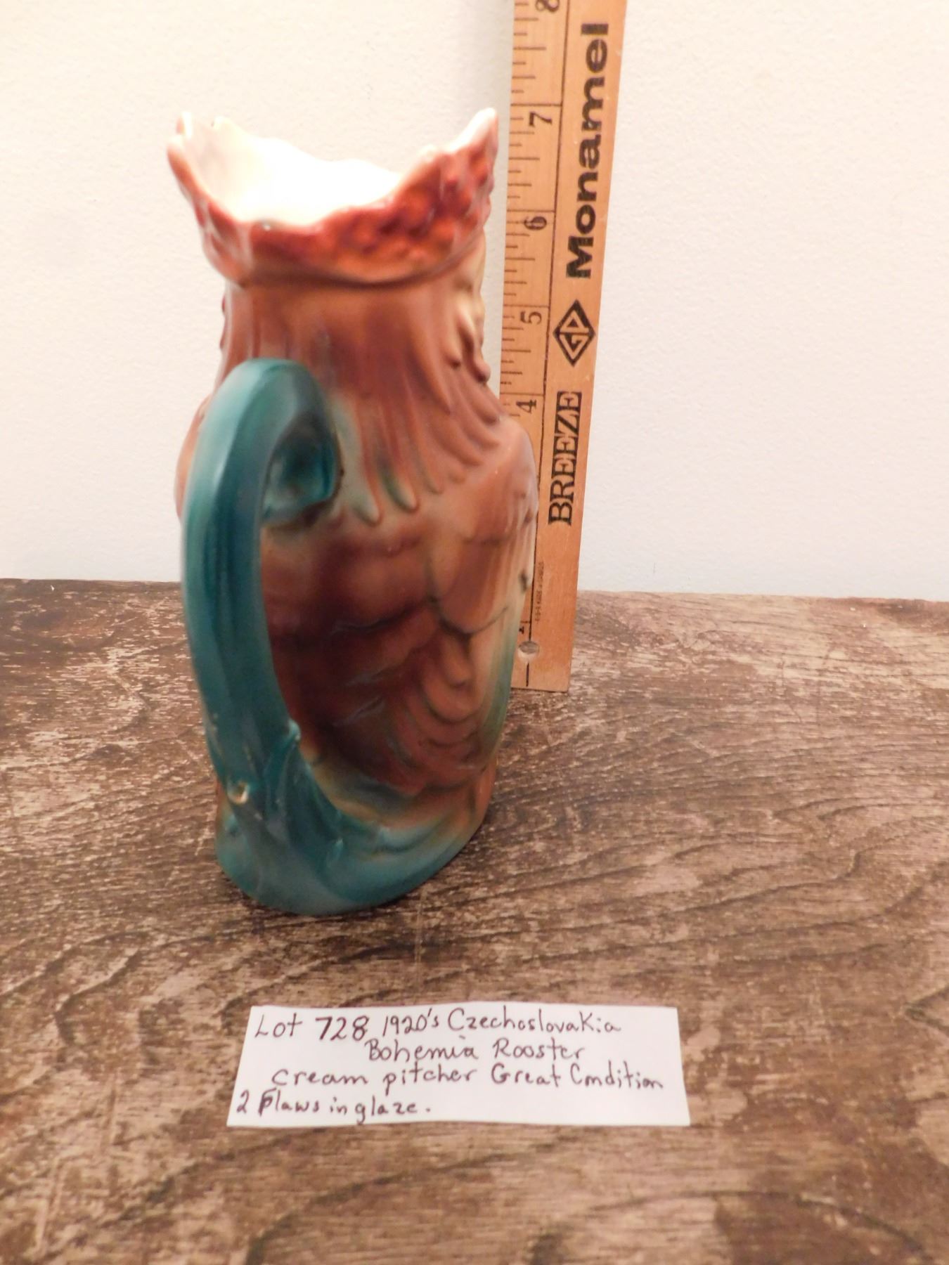 1920’S CZECH BOHEMIA POTTERY ROOSTER CREAM PITCHER