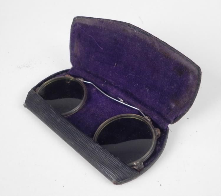 1920'S GERMAN SUN GLASSES IN CASE NOSE RETENTION OLD FASHION TYPE-INTERESTING ORIGINALS