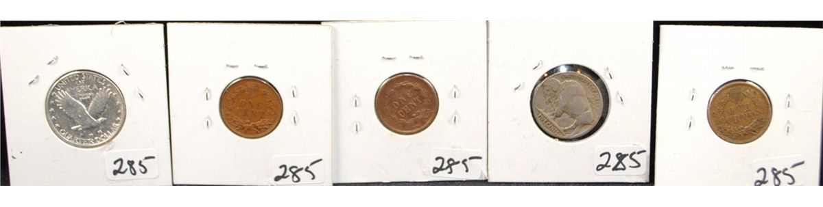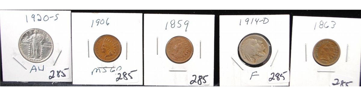 1920-S STANKING LIBERTY QTR, 1914-D BUFFALO NICKEL, 1859 - 1863 & 1906 INDIAN CENTS - SOLD PER COIN TIMES 5