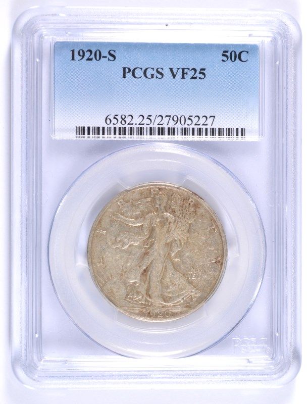 1920-S WALKING LIBERTY HALF DOLLAR, PCGS VF-25