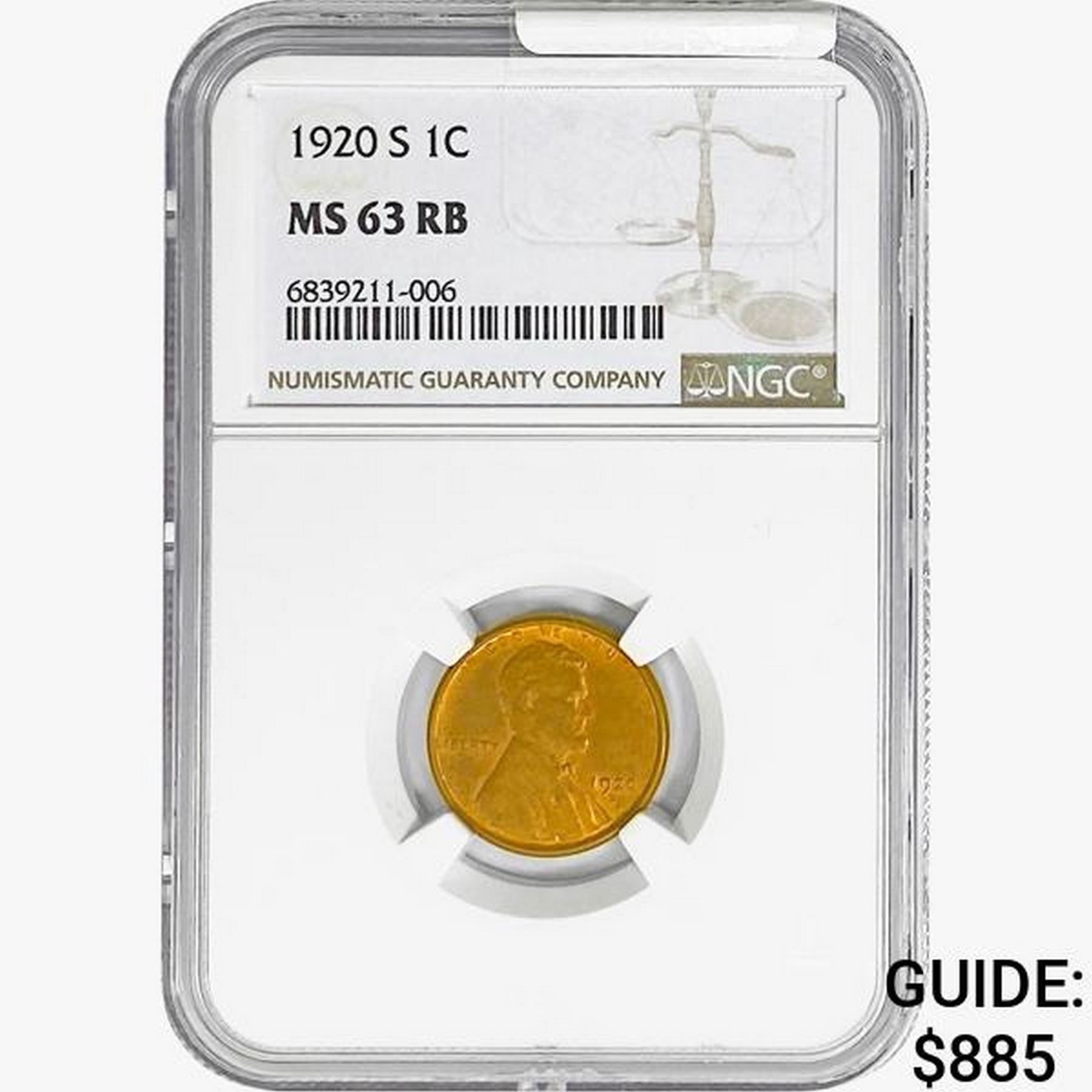 1920-S Wheat Cent NGC MS63 RB